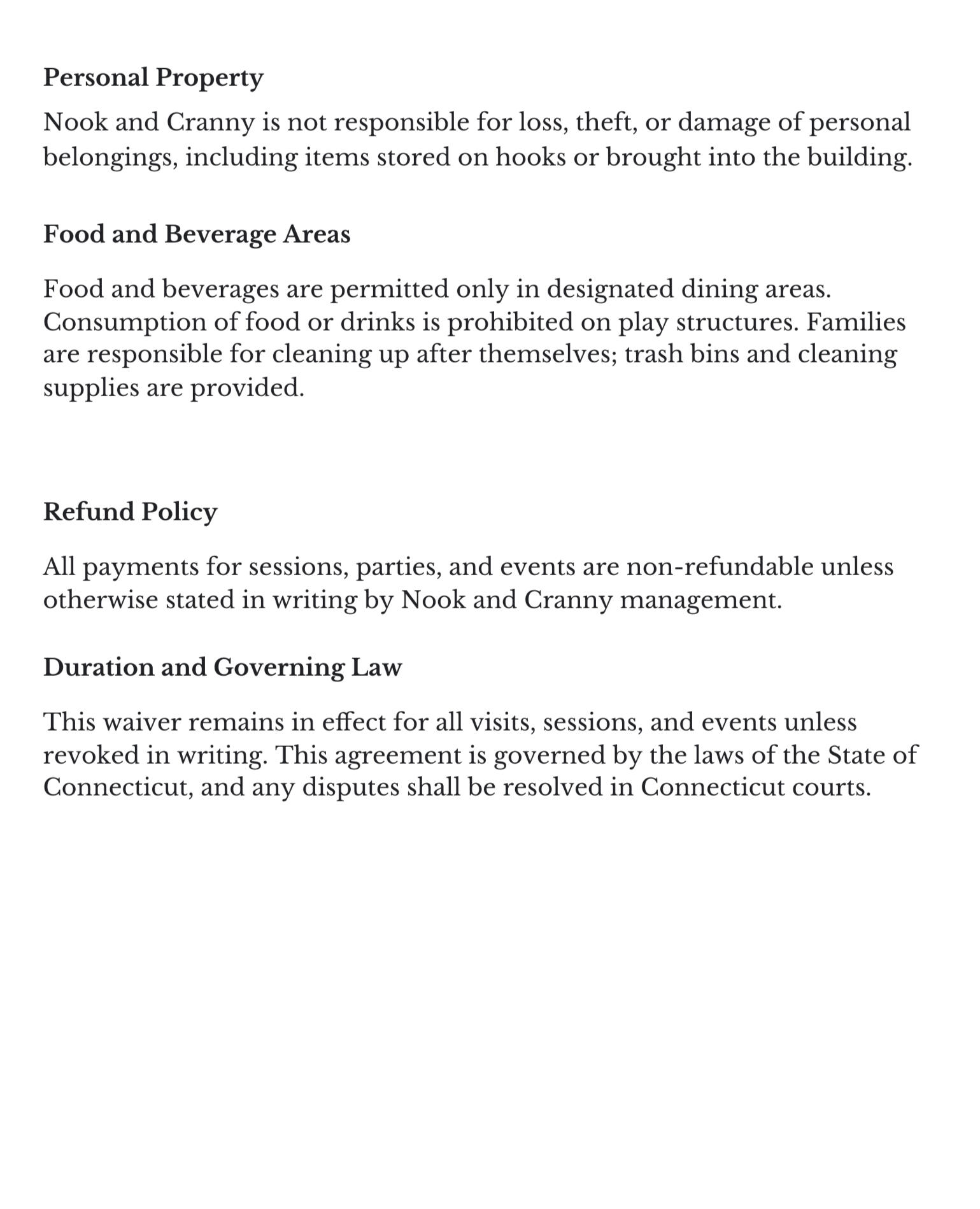 Private Group RentalsLooking for a private play experience for a small group? Nook and Cranny offers exclusive access to our indoor playground for small gatherings or group activities.If you’re interested, please reach out to us with three preferred dates and times, and we’ll get back to you to confirm availability.Pricing:1 hour: $65 plus tax