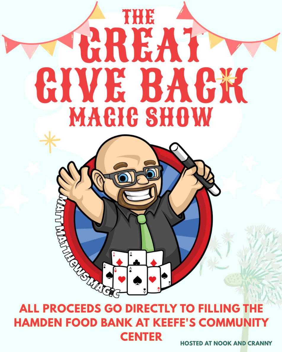 On December 19th at 5:30 PM, Matt Matthews Magic will perform a dazzling 40-minute magic show to support Keefe’s Community Center: Hamden Food Bank.The show will wrap up by 6:30 PM, perfect for families! This event is recommended for ages 4+, but all ages are welcome to enjoy the fun.